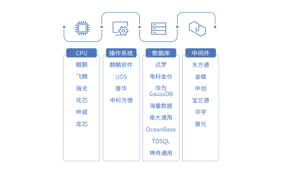全面适配信创目录内的主流CPU、操作系统、数据库、中间件等产品,满足信创客户的应用需求